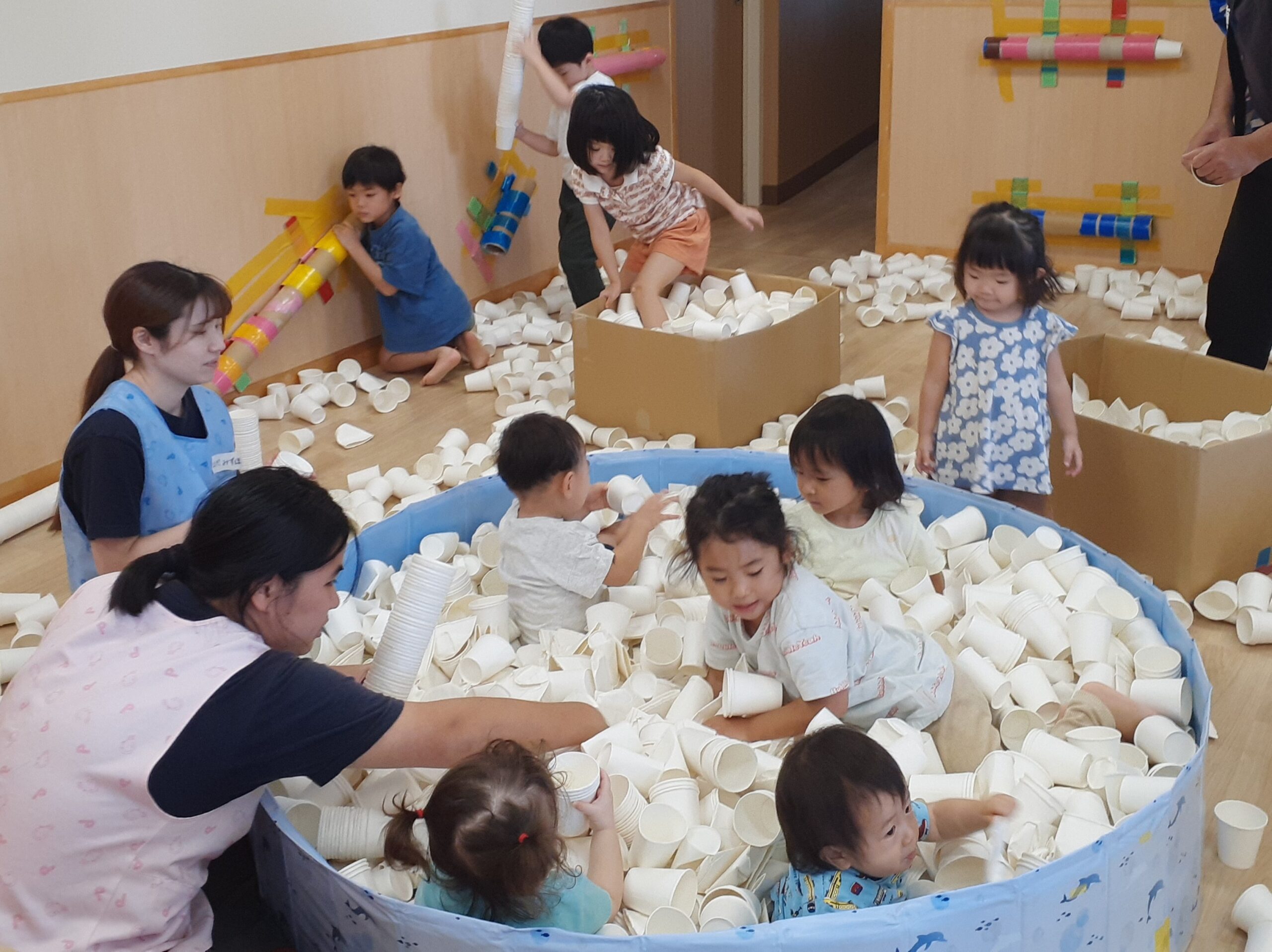 お友達や保育者と体を動かしながらのびのびと過ごし様々な発見が出来るような環境作りを心がけています。